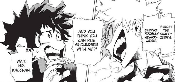 -when deku found out he was quirkless, he was made fun of, and seen as inferior to bakugou