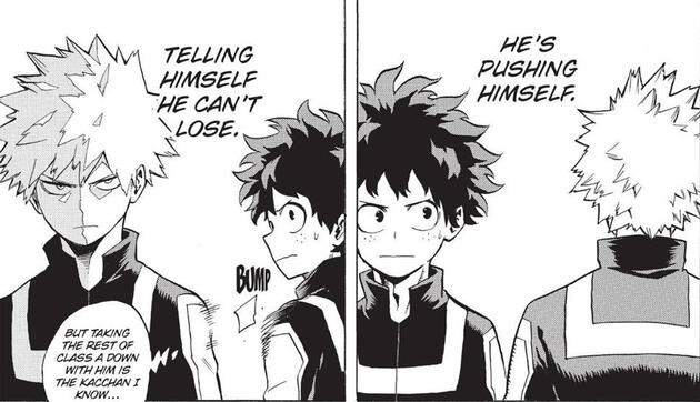-bakugou really jumped to conclusions here because absolutely none of that was true, and deku felt terrible and that he needed to explain himself. by doing this, it shows deku trusts bakugou by telling him this secret. bakugou also somewhat respects deku at this point, because he keeps it a secret, respecting deku and all might’s privacy.