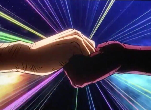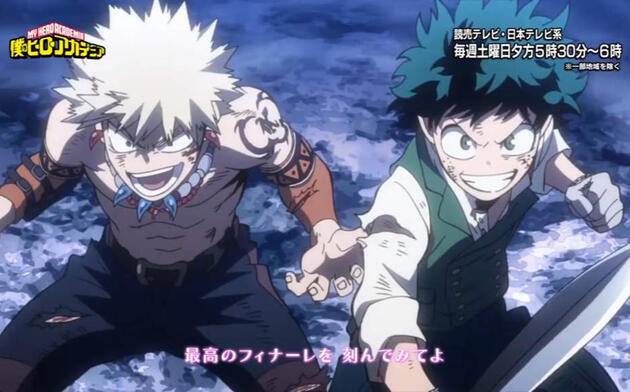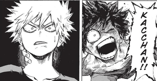 flash forward to current time, deku and shigaraki are still fighting, bakugou grabs endeavor and todoroki and blasts himself upward towards deku. bakugou is shown having flashback to middle school, when he bullied him, then when they were kids, remembering every moment they've had together.
