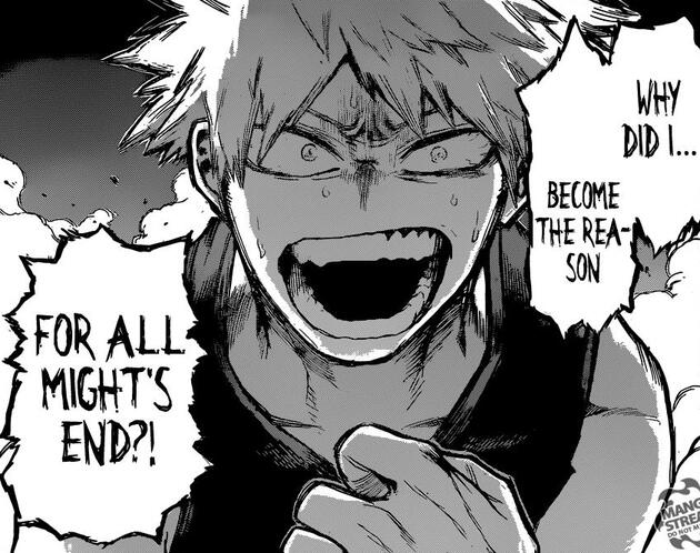 things begin to progress, and shigaraki is only becoming more powerful, and deku knows that he's the only one that can stop him. deku charges after him and bakugou is shown looking angry and worried has he reaches out to deku because he knows that if he goes he is going to be in grave danger.